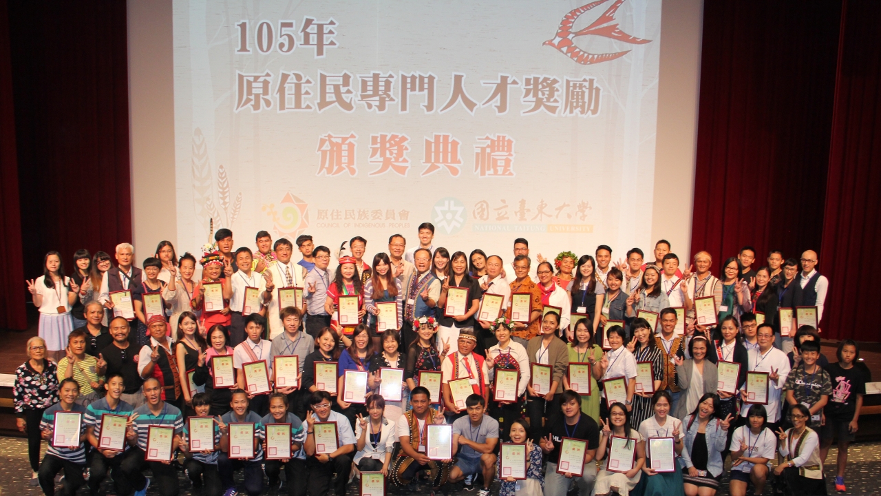 105年度原住民專門人才獎勵頒獎典禮 日期:105年9月24日 地點:台東桂田酒店5樓國際劇院