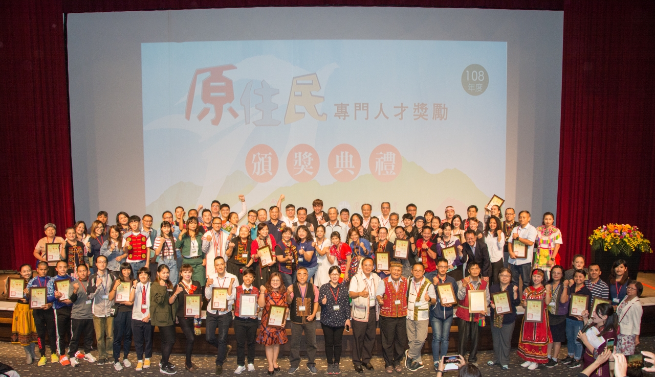 108年度原住民專門人才獎勵頒獎典禮 日期:108年10月19日 地點:臺東桂田喜來登酒店5樓國際劇院