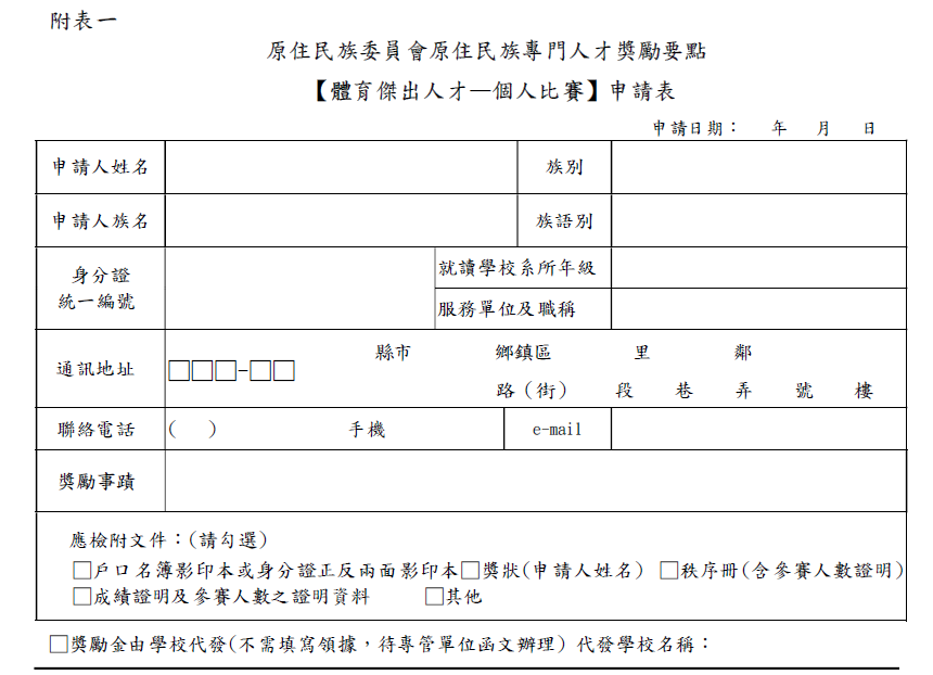 【體育傑出人才-個人比賽】申請表