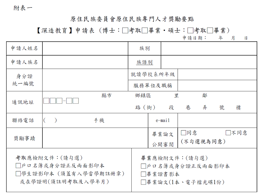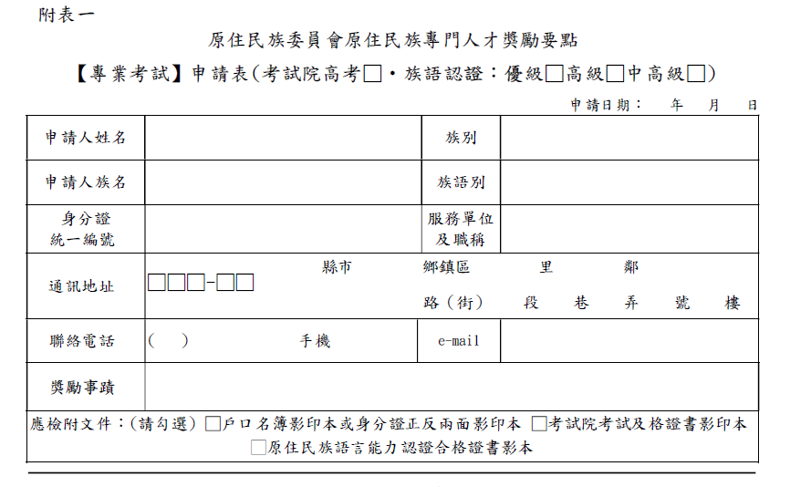 原住民族專門人才獎勵金申請平臺