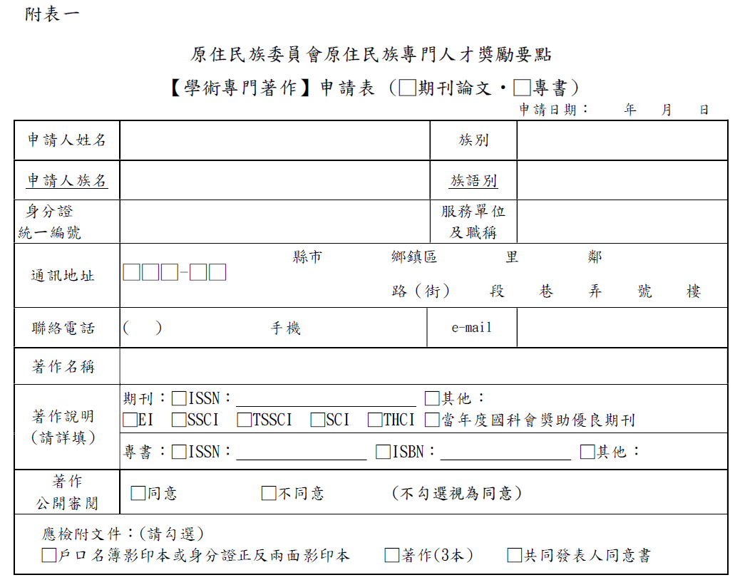 【學術專門著作】申請表