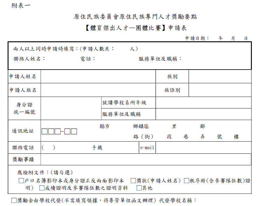 【體育傑出人才-團體比賽】申請表